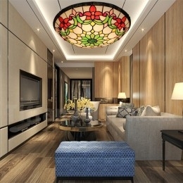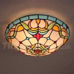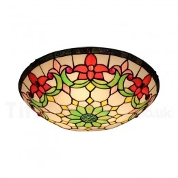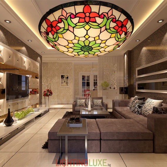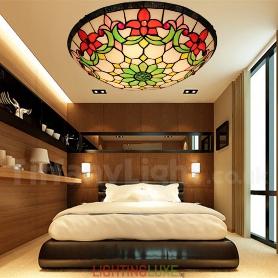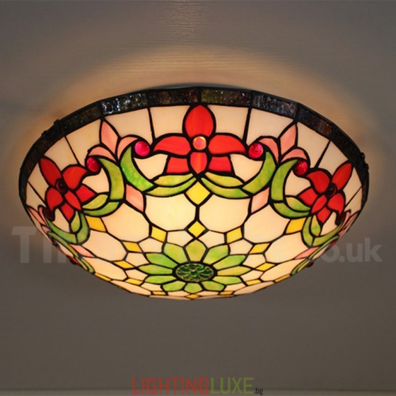 Ръчно изработена винтидж 16-инчова витражна лампа Tiffany за вграден монтаж