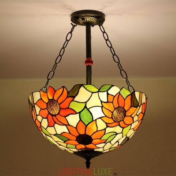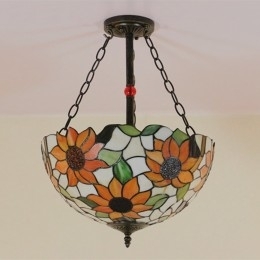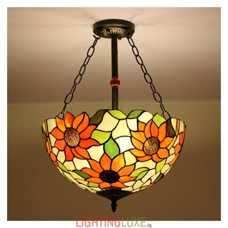 Ръчно изработена винтидж стъклена лампа Tiffany със слънчоглед, 16 инча