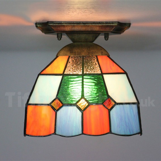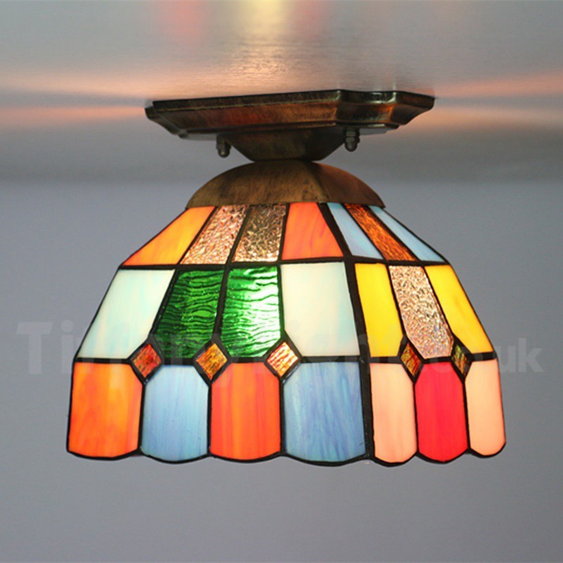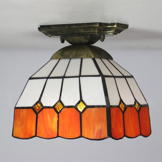 Ръчно изработена винтидж 8-инчова витражна лампа Tiffany за вграден монтаж