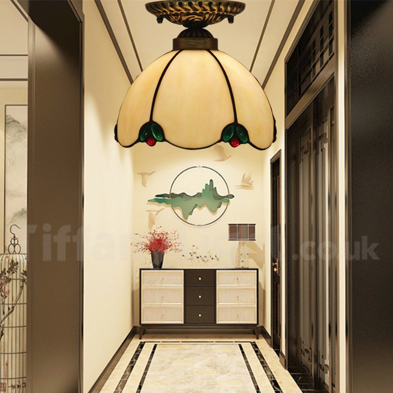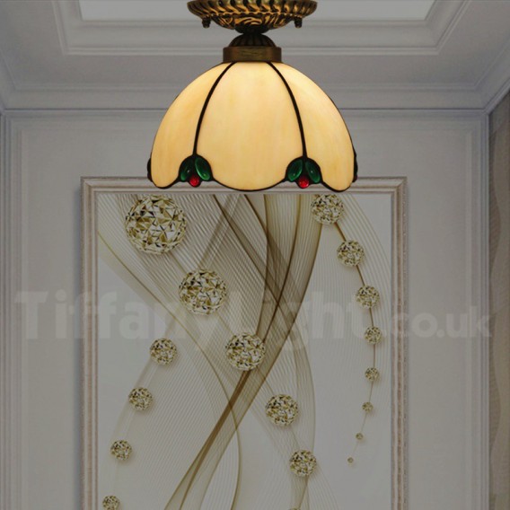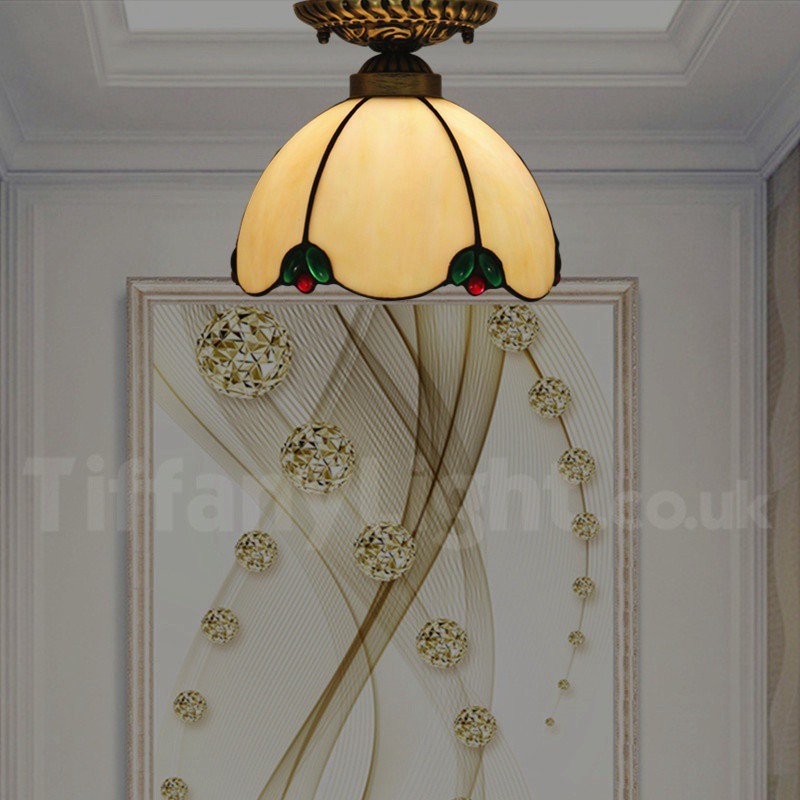 Ръчно изработена винтидж 8-инчова американска семпла витражна лампа Tiffany за вграждане