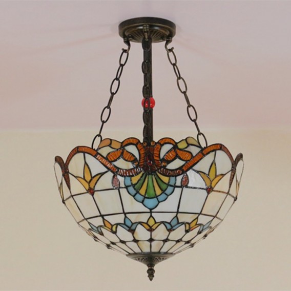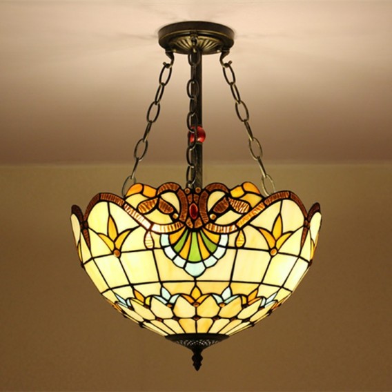 Ръчно изработена винтидж барокова 16-инчова витражна лампа Tiffany за вграден монтаж