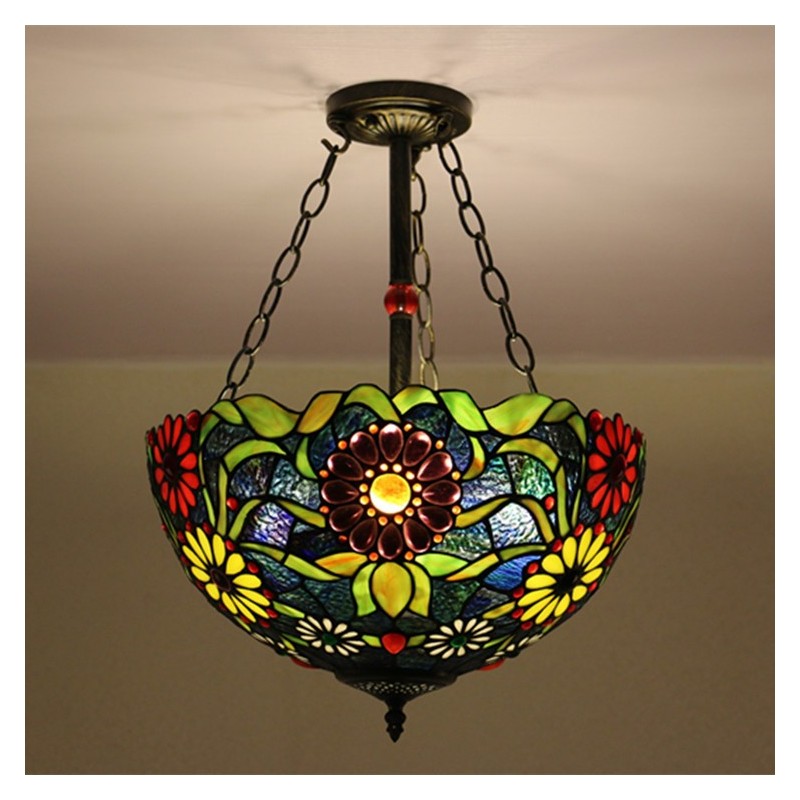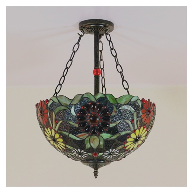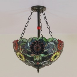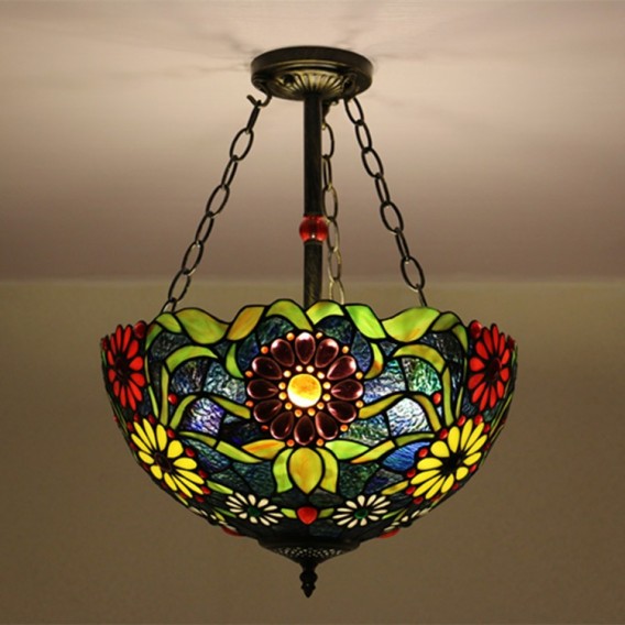 Ръчно изработена винтидж стъклена лампа Tiffany със слънчоглед, 16 инча