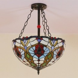 Ръчно изработена винтидж 16-инчова витражна лампа Tiffany за вграден монтаж