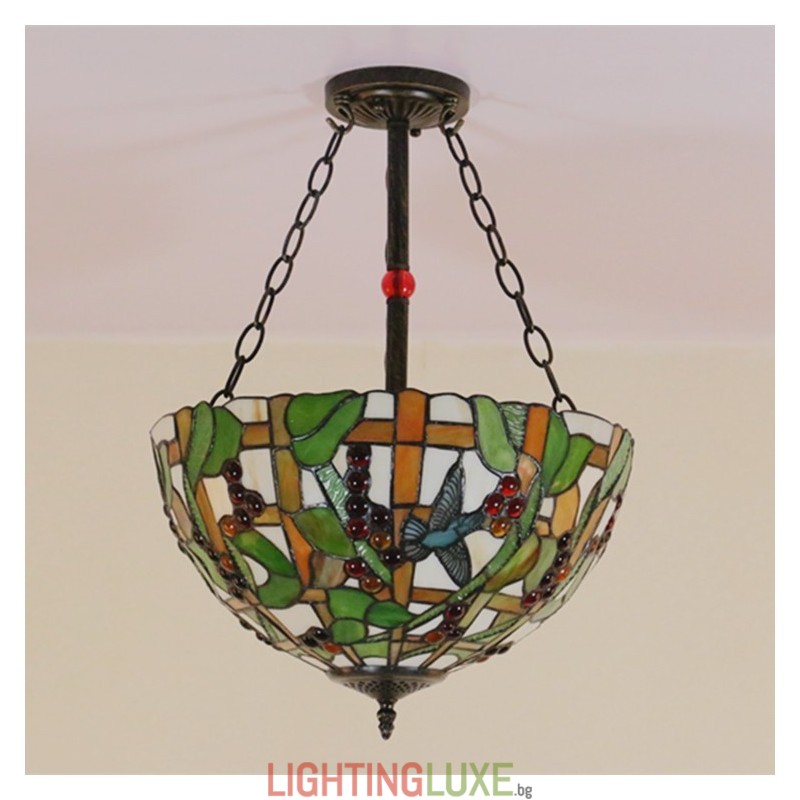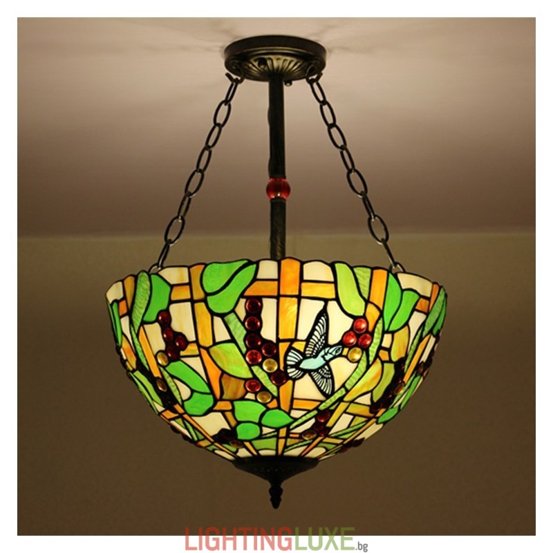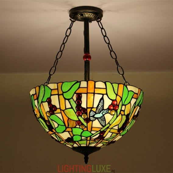 Ръчно изработена винтидж стъклена лампа Tiffany с витраж Hummingbird, 16 инча