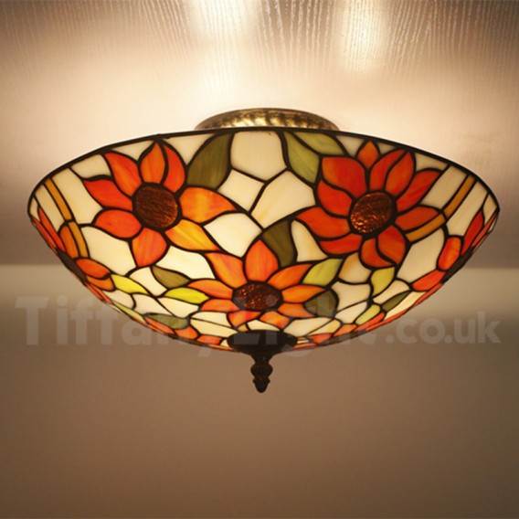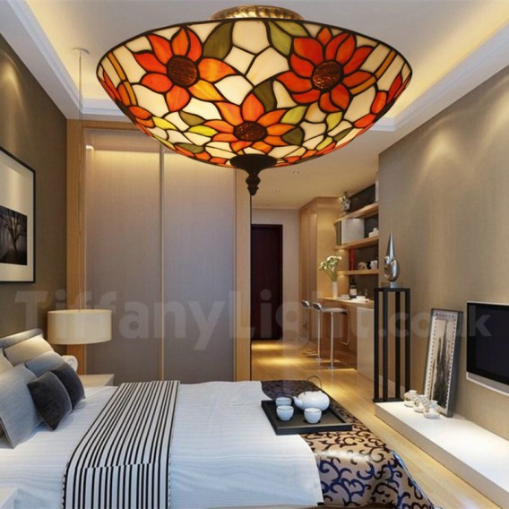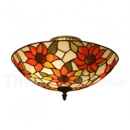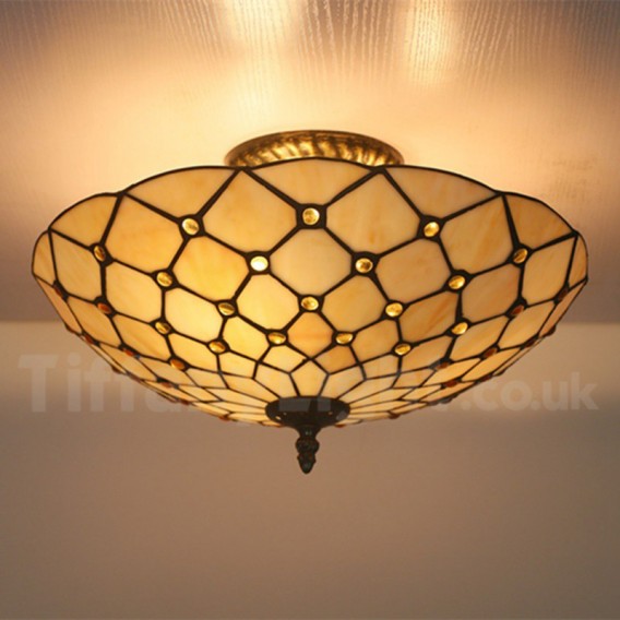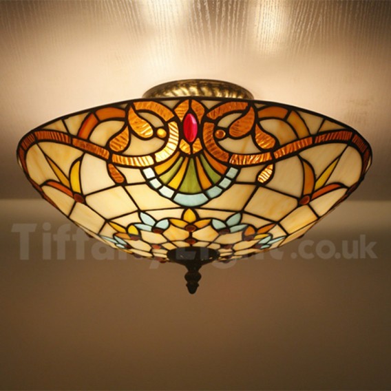 Ръчно изработена винтидж 16-инчова витражна лампа Tiffany за вграден монтаж