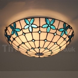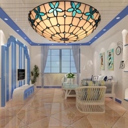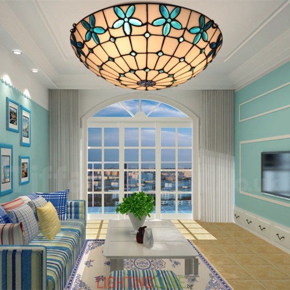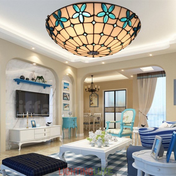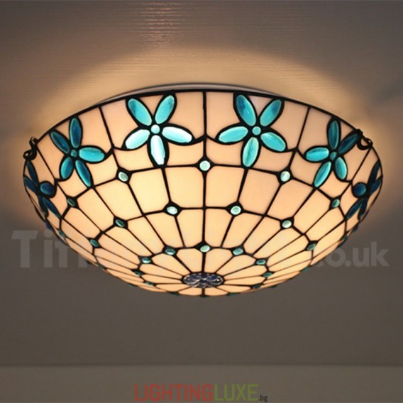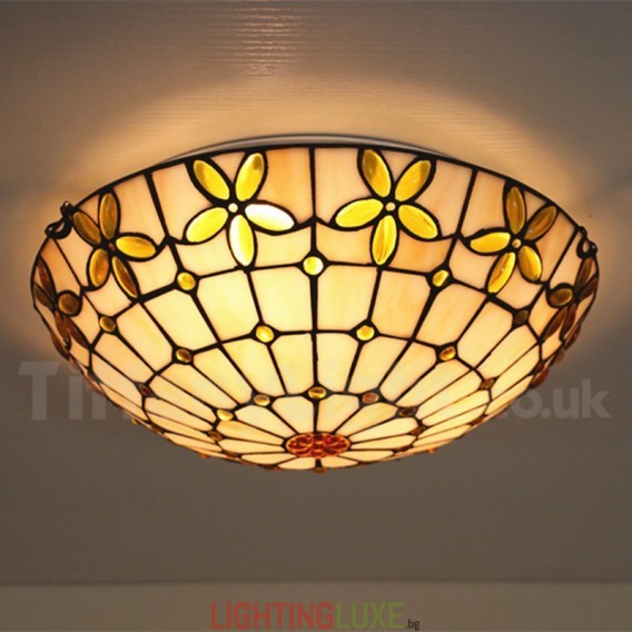 Ръчно изработена винтидж 16-инчова витражна лампа Tiffany за вграден монтаж