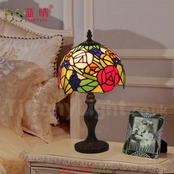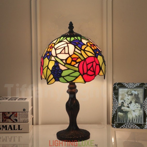 Ръчно изработена винтидж 8-инчова настолна лампа Тифани с витраж в стил грозде