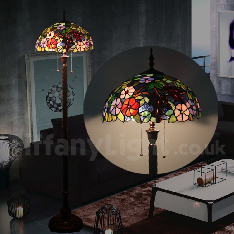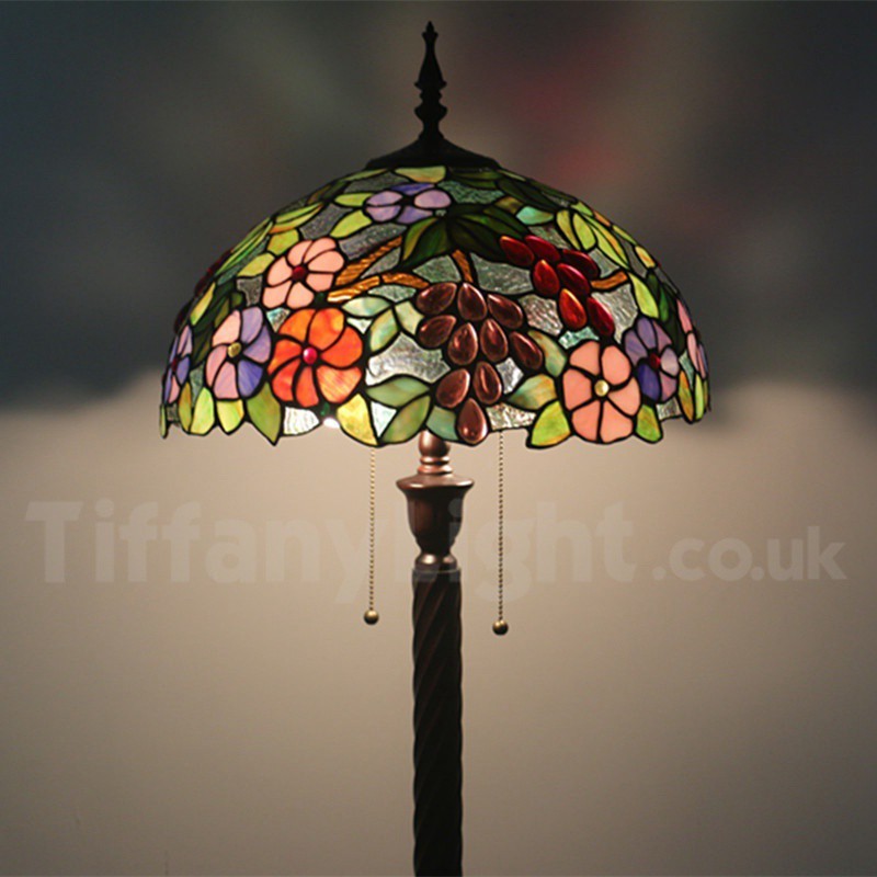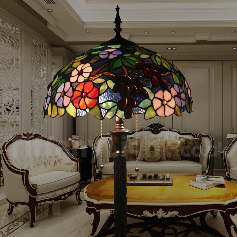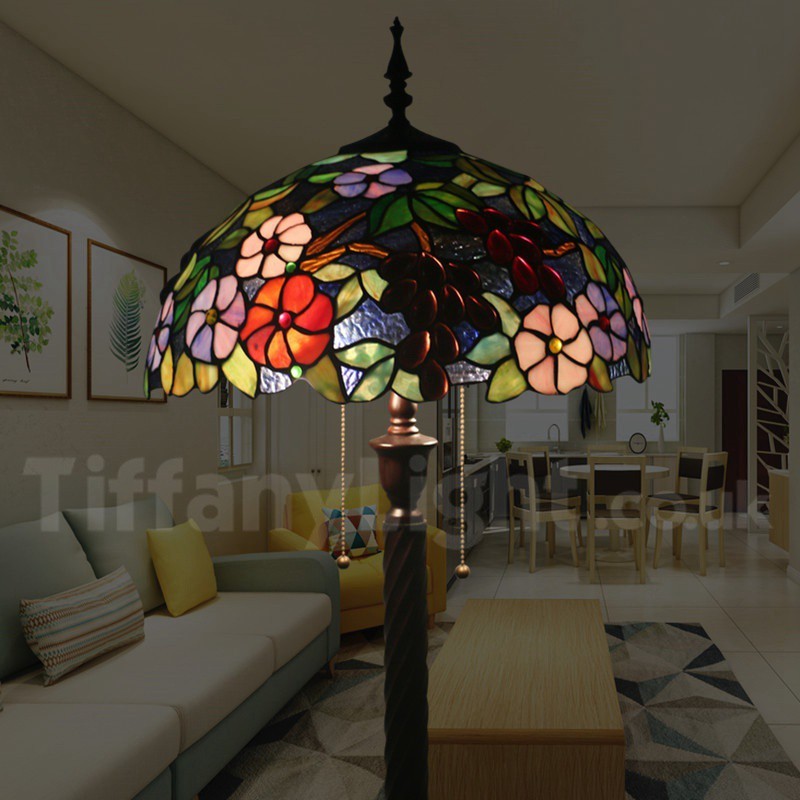 Ръчно изработена винтидж 16-инчова витражна лампа Tiffany с гроздови мотиви