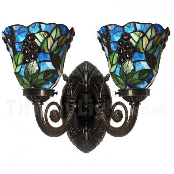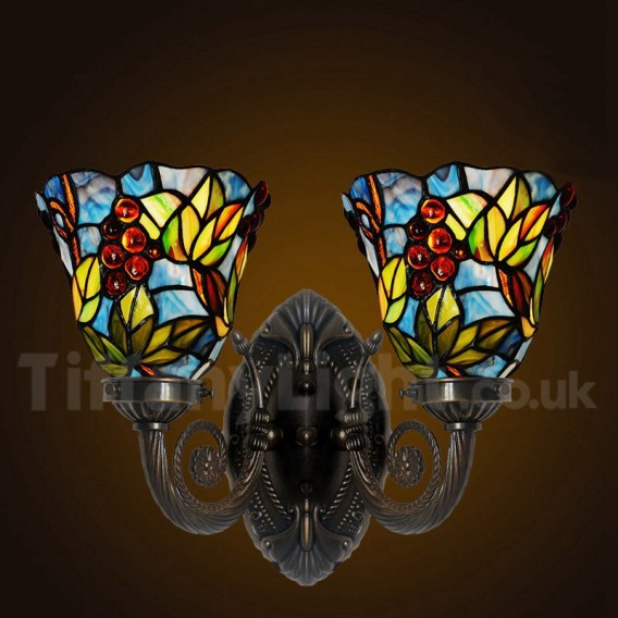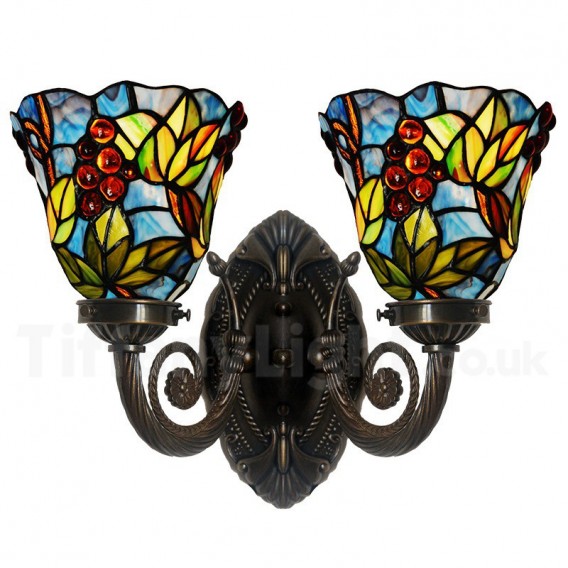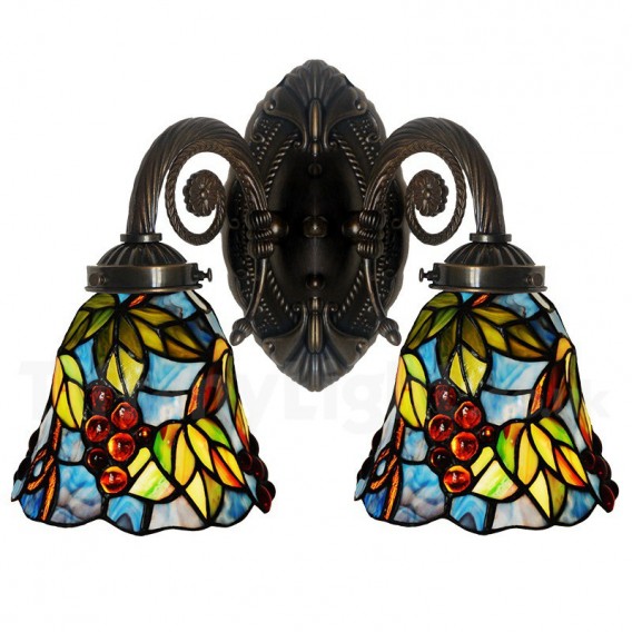 Ръчно изработена винтидж селска стенна лампа с 2 лампи Grape Tiffany