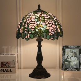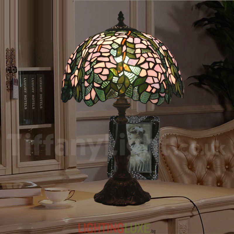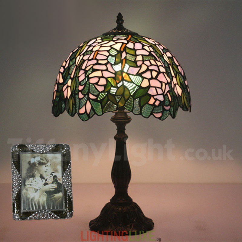 Ръчно изработена винтидж настолна лампа Тифани от витраж в стил глициния, 12 инча