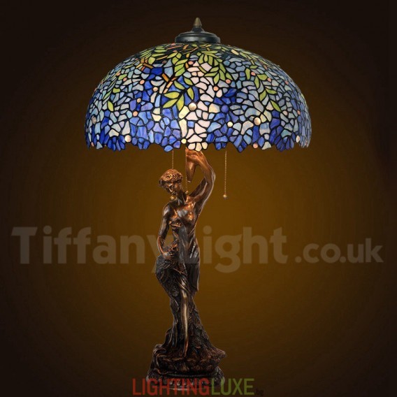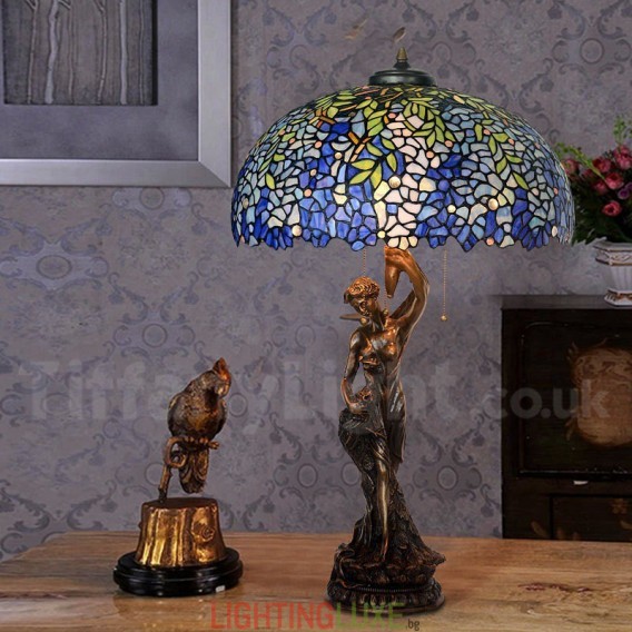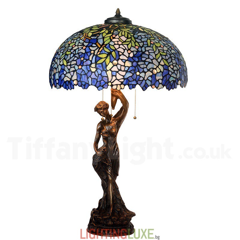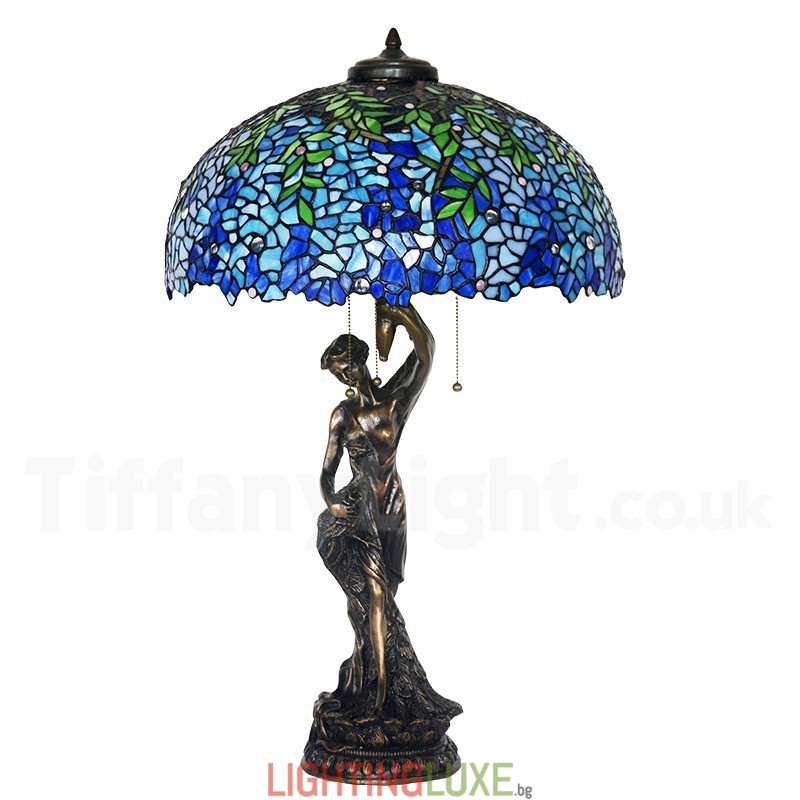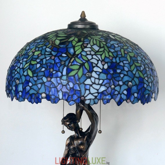 Ръчно изработена винтидж 20-инчова ретро синя настолна лампа Тифани с глициния