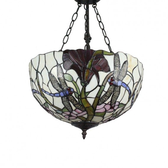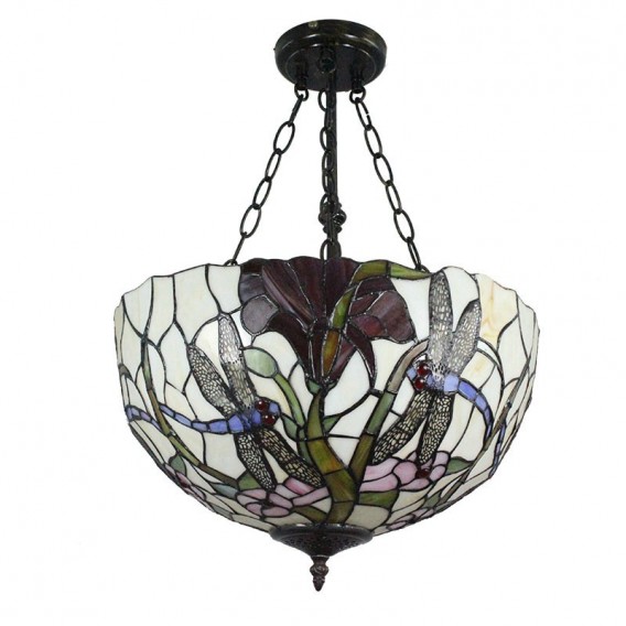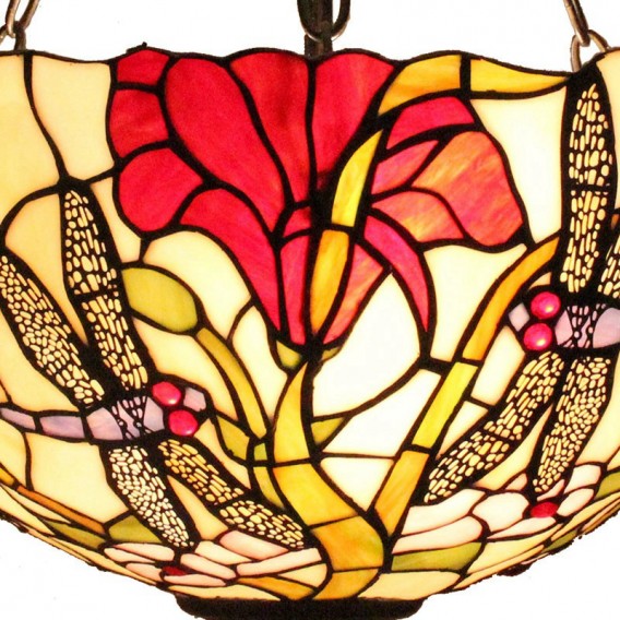 Ръчно изработен винтидж 16-инчов пасторален ретро полилей Тифани с абажур с мотив на водно конче и червено цвете