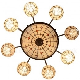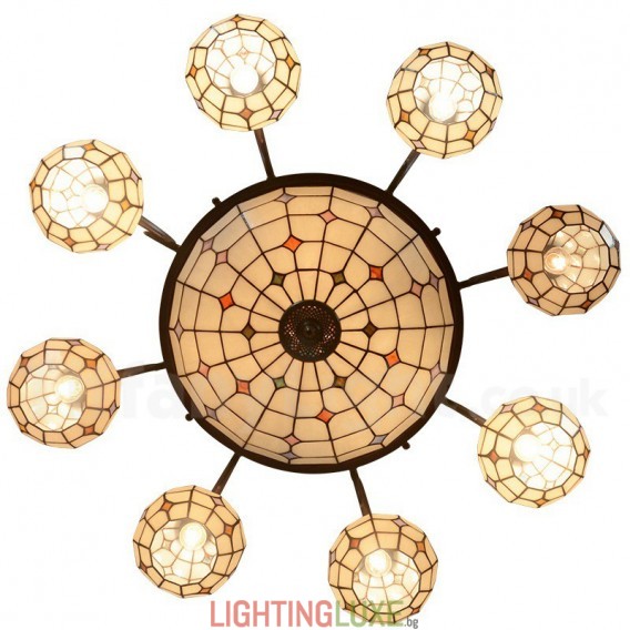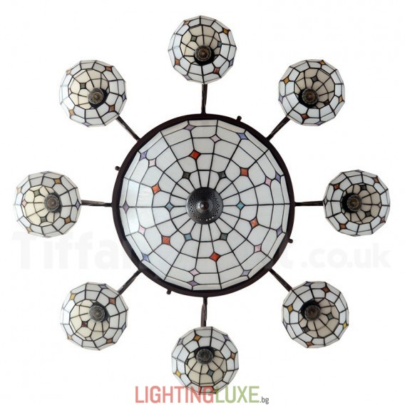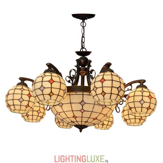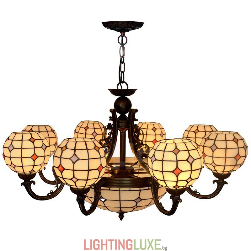Ръчно изработен винтидж полилей с 8+1 лампи, Tiffany