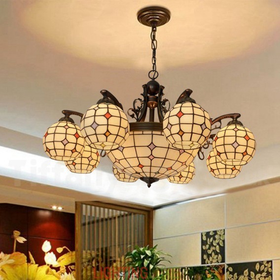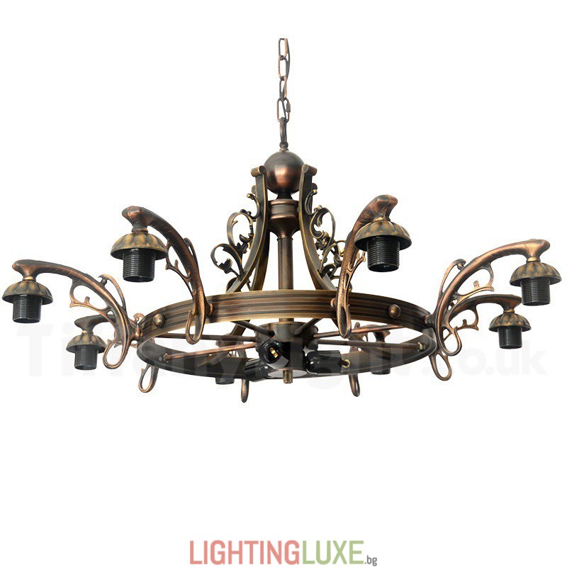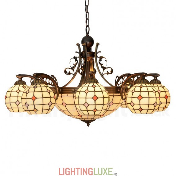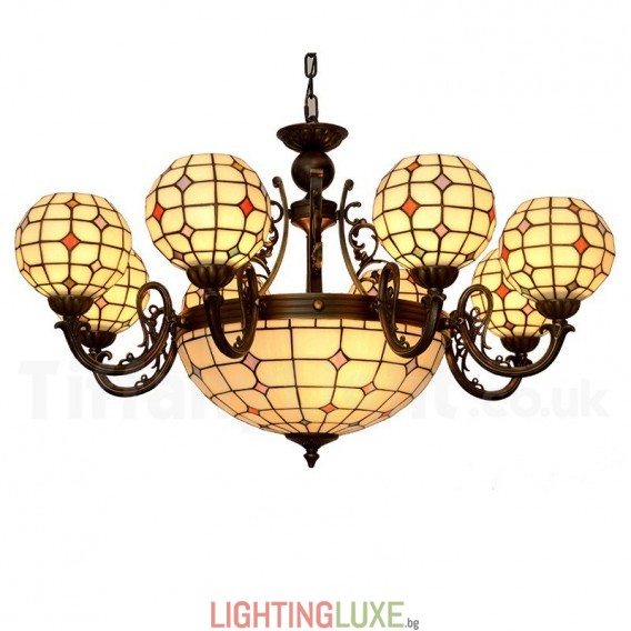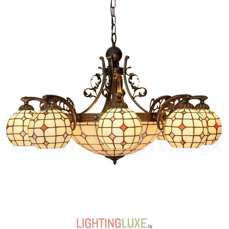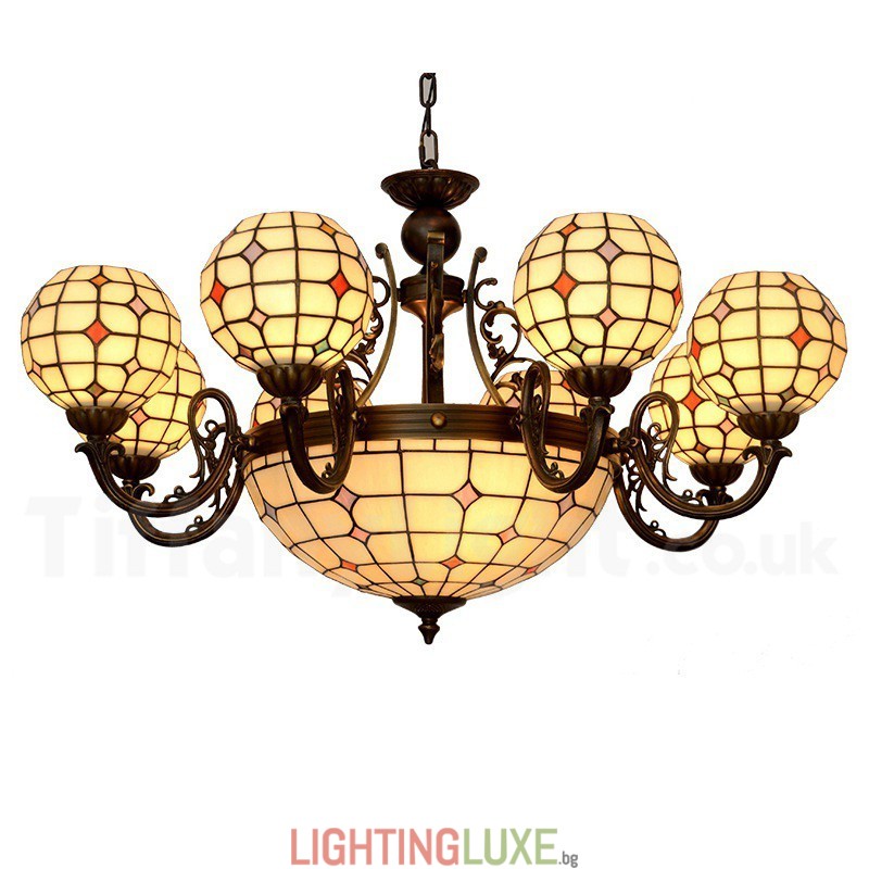 Ръчно изработен винтидж полилей с 8+1 лампи, Tiffany