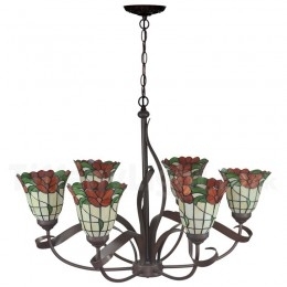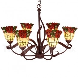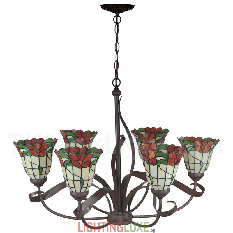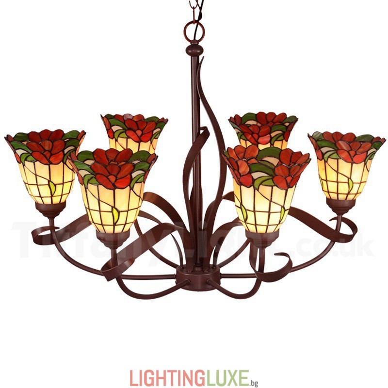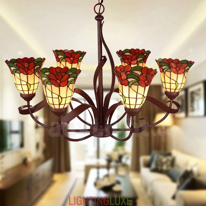 Ръчно изработен винтидж селски полилей с 6 лампи, полилей Тифани