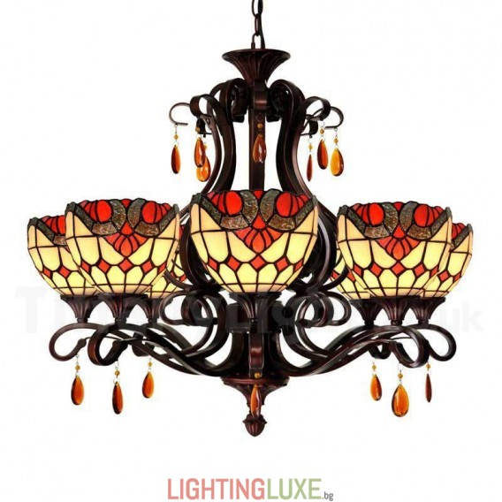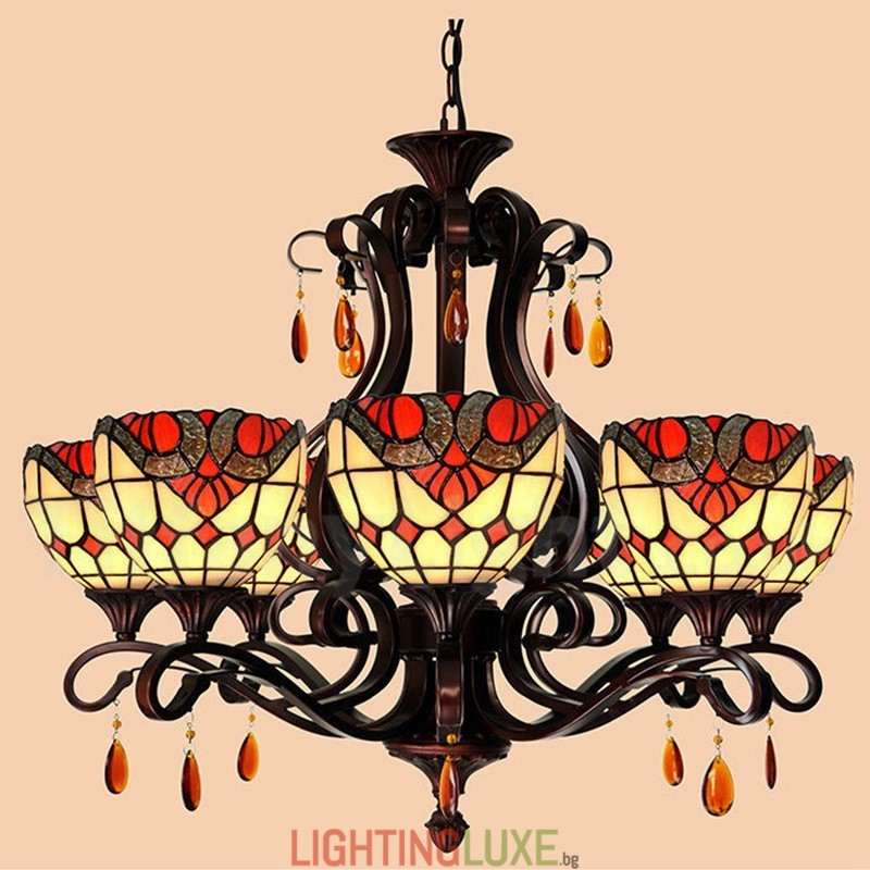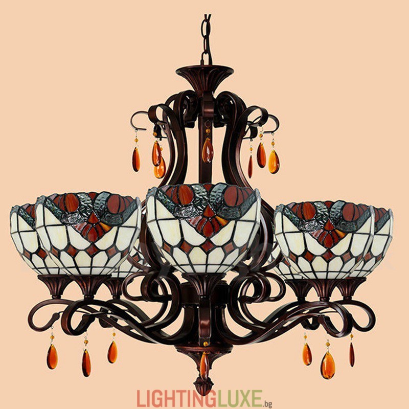 Ръчно изработен винтидж полилей бароков полилей Тифани с 6 лампи