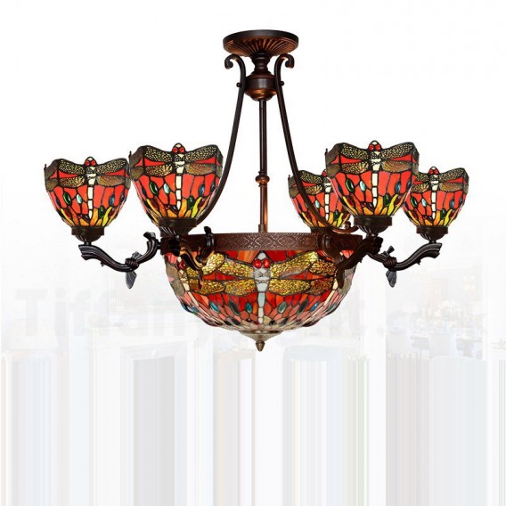 Ръчно изработен винтидж полилей Тифани със 7 светлини в рустик ретро стил