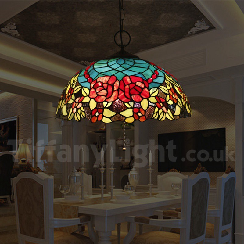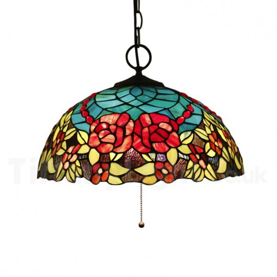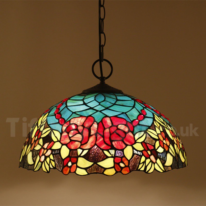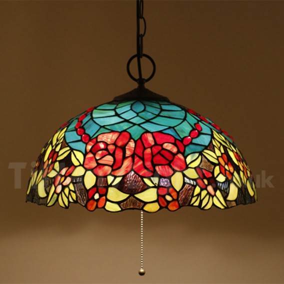 Ръчно изработена винтидж 16-инчова витражна висяща лампа Тифани