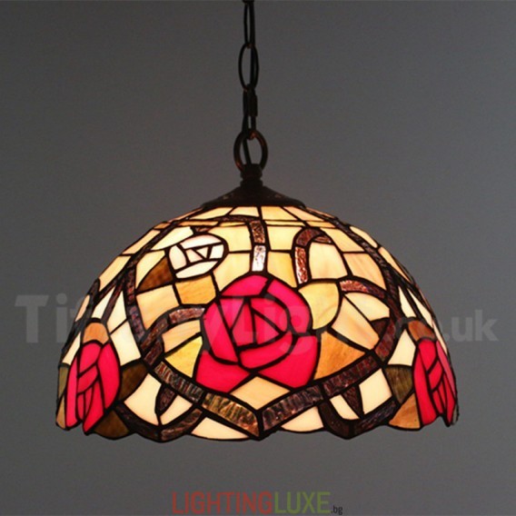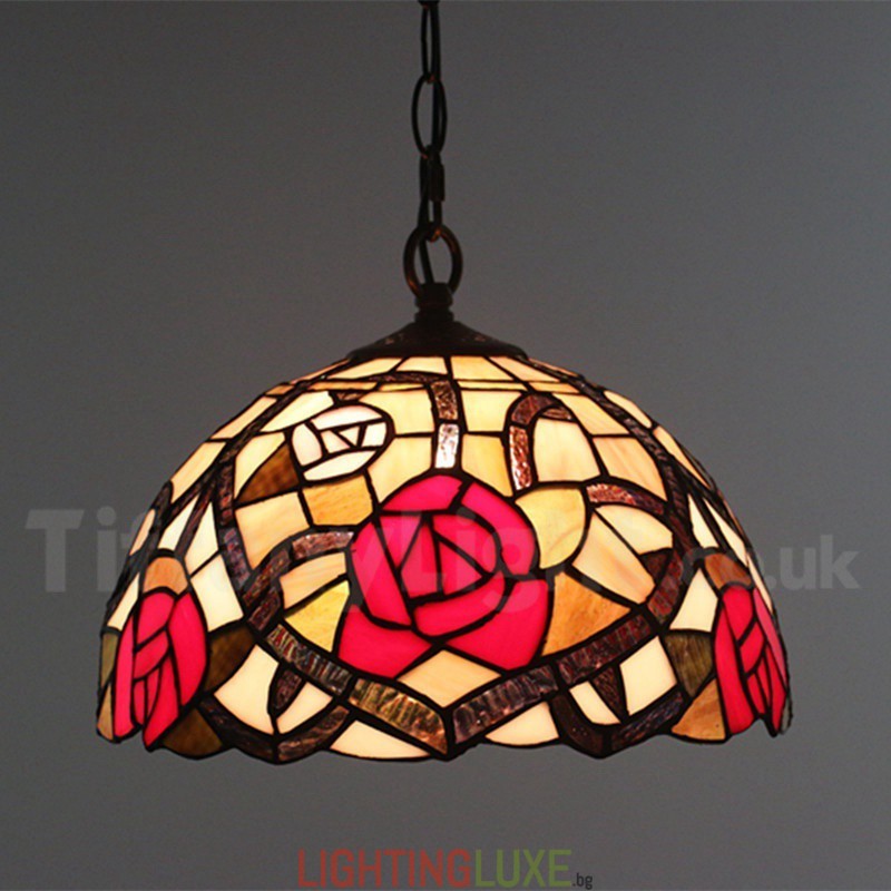 Ръчно изработена винтидж 12-инчова витражна стъклена лампа Тифани в стил роза