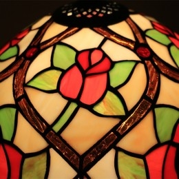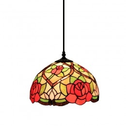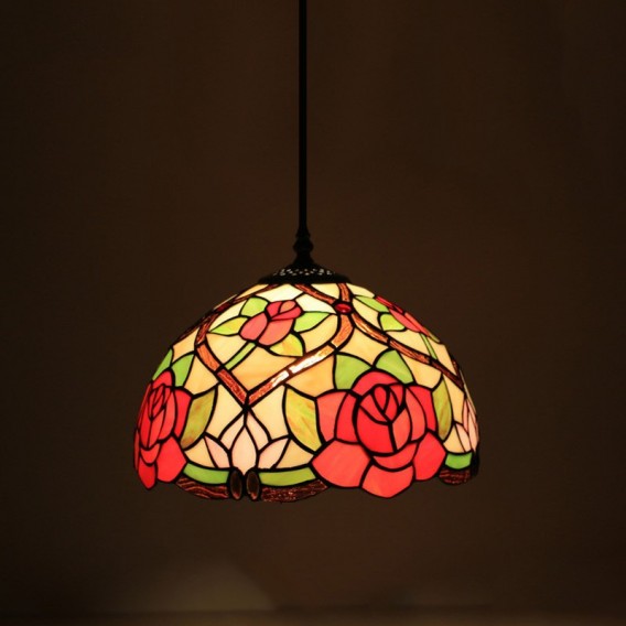 Ръчно изработена винтидж 12-инчова витражна стъклена лампа Тифани в стил роза