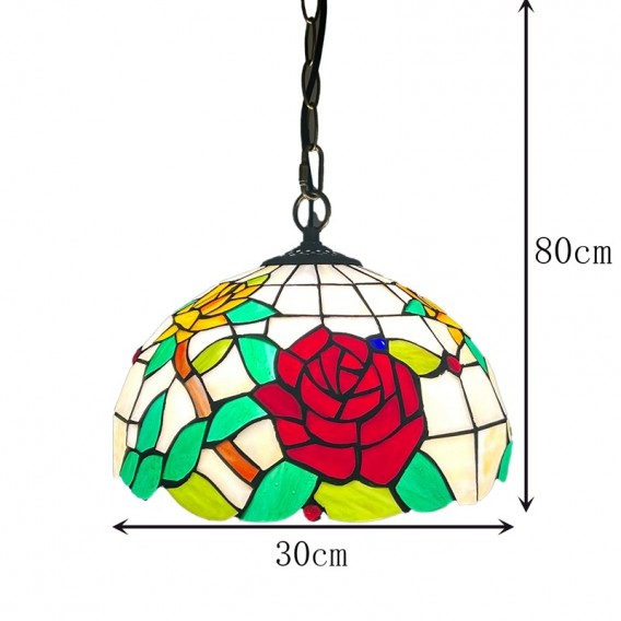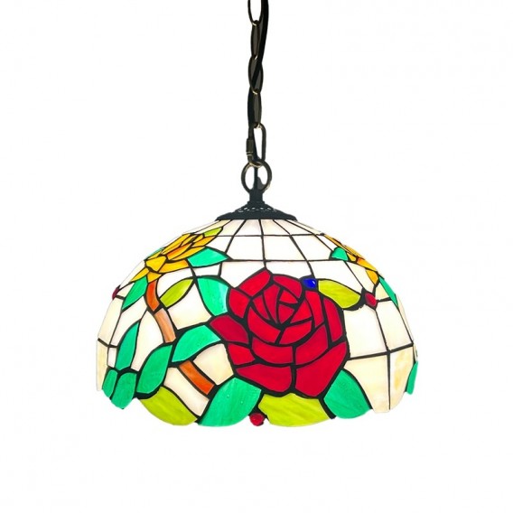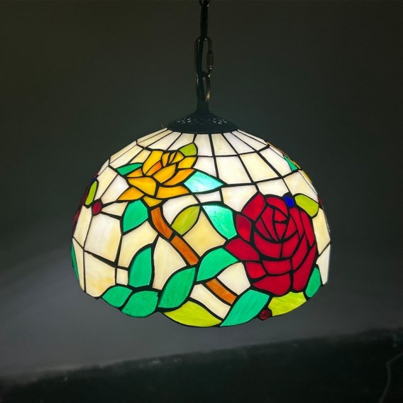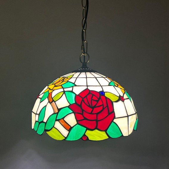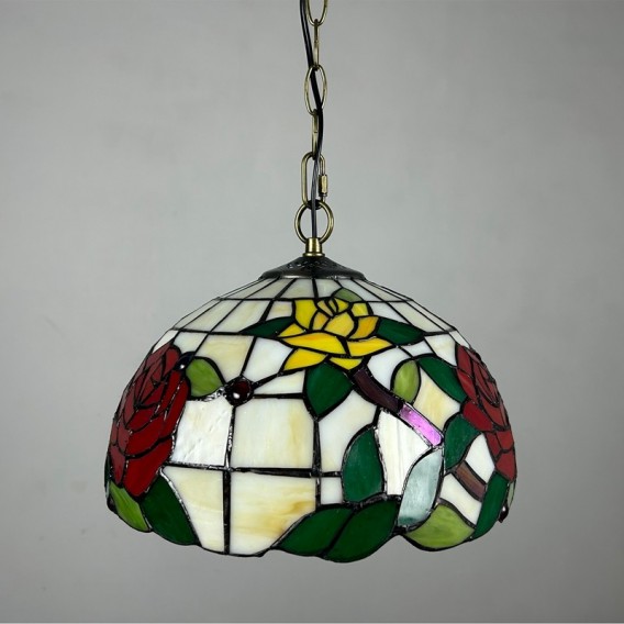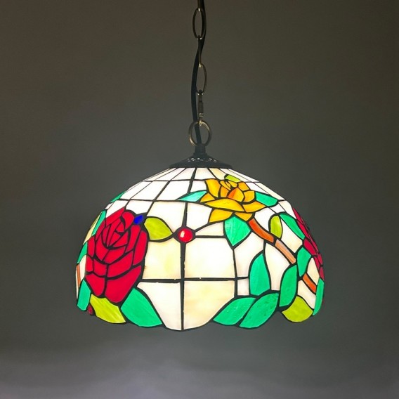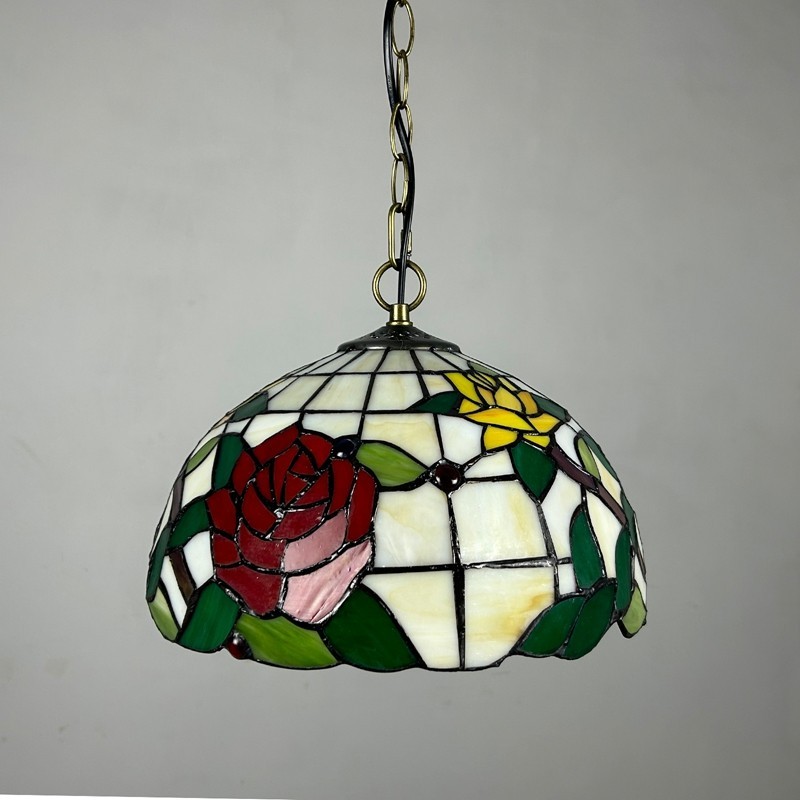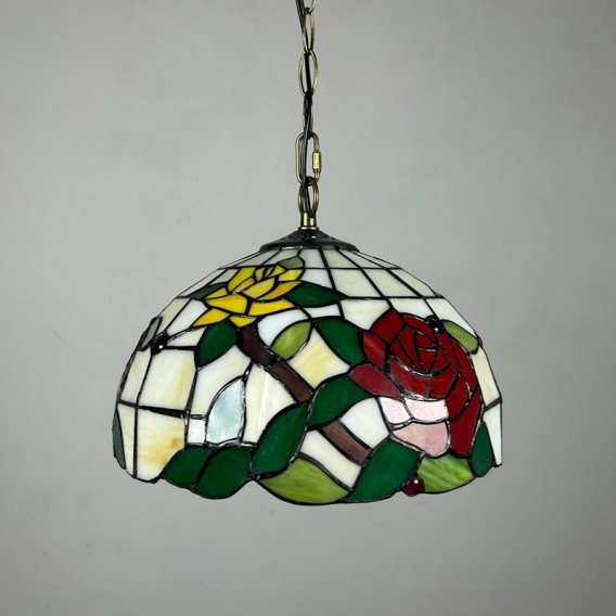 Ръчно изработен винтидж абажур с роза, витраж, стил Тифани