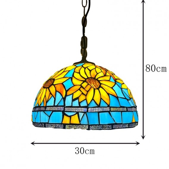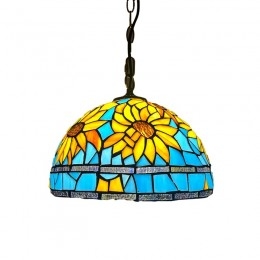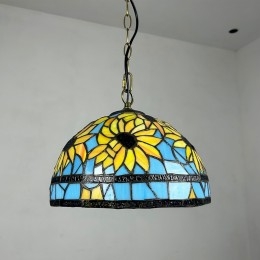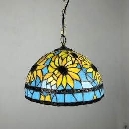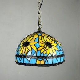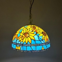 Ръчно изработен винтидж абажур слънчоглед в стил Тифани, витражна висяща лампа Тифани